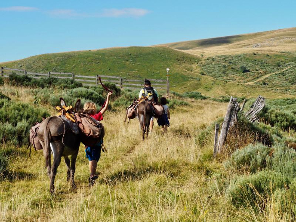 Itinérance sur plusieurs jours : partez à l’aventure avec un âne bâté et explorez les paysages grandioses des Monts du Cantal.
