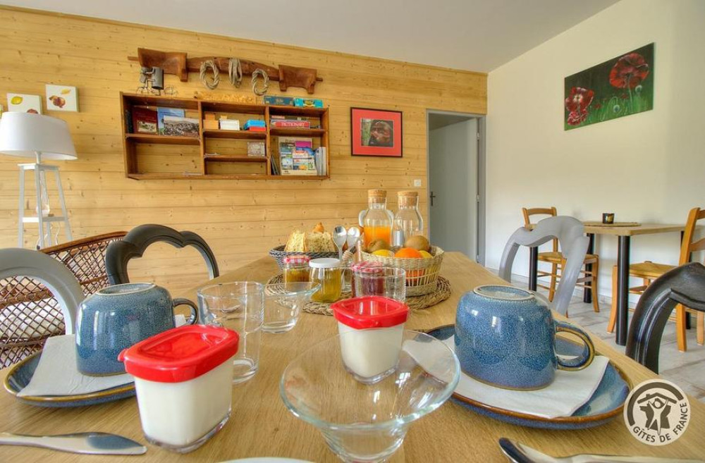 Outstanding location at heart of the Beaujolais hills! Farmhouse, built 1804, with dovecote, well, lovely open gallery and gateway (a listed historical building). 1st floor: 2 family rooms (double bed, bunk beds in each), room 3 (double bed), room 4 (twin beds). Ground floor: 55 sq. m living room, lounge area (TV), kitchen area reserved for guests. Book ahead for table d'hôte meals (NOT Saturday, Sunday, French bank holidays), featuring regional dishes, garden vegetables and local produce. Open farmyard, terrace, BBQ. Many open spaces around the property, tour of farm et animals (cows, hens, rabbits, ducks, pony). Accommodation for horse riders. All the accommodation can be booked together, if required. 5km from the Lac des Sapins (largest ecological swimming lake in Europe). Rate for 4 people: 75 €uros.Outstanding location at heart of the Beaujolais hills! 18th century farmhouse with dovecote, well and lovely open gallery. 1st floor: 2 family rooms (double bed, bunk beds in each), room 3 (double bed), room 4 (twin beds). Ground floor: 55 sq. m living room, lounge area (TV), kitchen area reserved for guests. Book ahead for table d'hôte meals (NOT Saturday, Sunday, French bank holidays), featuring regional dishes, garden vegetables and local produce (preserves, blackcurrant cordial, farm yoghurt). Open farmyard, terrace, BBQ. Many open spaces around the property, tour of farm & animals (cows, hens, rabbits, ducks, pony). Accommodation for horse riders. All the accommodation can be booked together, if required. 5km from the Lac des Sapins (largest ecological swimming lake in Europe). Rate for 4 people: 75 €uros. Meal for child: 10 euros.