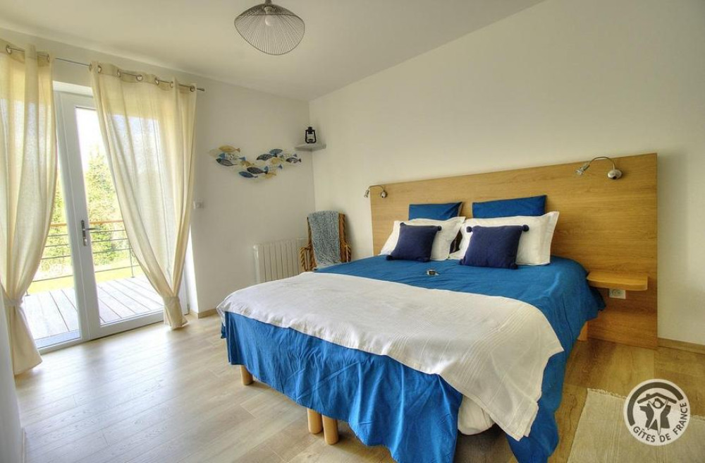 - Sleeping area 2: 1 bedroom for 2 people, 1 bedroom for 4 people with the possibility of an extra bed for 2 children (on request), 1 shower room, 1 separate toilet. Unenclosed grounds. South-facing terrace with table and chairs, garden furniture and barbecue. Petanque ground. Private car park. Direct access to the lake and village on foot. Accommodation suitable for people with reduced mobility.