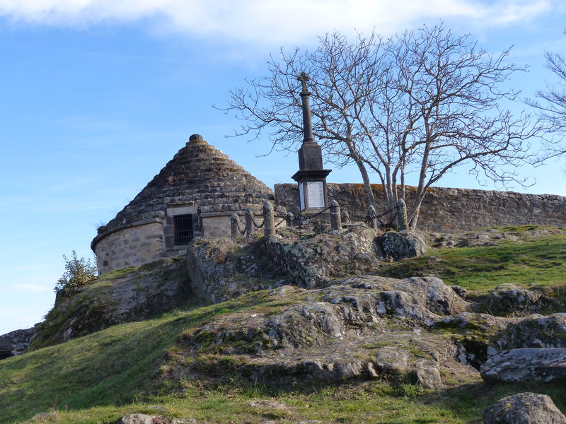 5 - Possible return to the Chastel site (chapel, ossuary, necropolis). Go down to Saint-Floret by the grassy path, to the right of the hill (Way of the Cross and halfway down the hill, stone cross engraved with a heart, view over the village and the castle). At the road, turn right, cross the Couze on the footbridge, and follow the road on the left to reach the starting point.Marking : YellowAdmission fee : Free access.Opening : From 01/01 to 31/12.