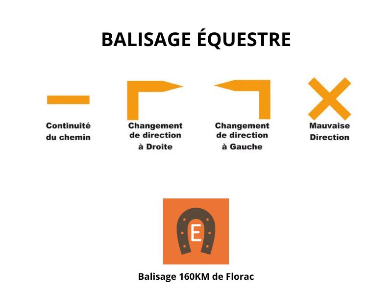 Equestrian hiking routes are marked with painted signs on trees and natural supports, as well as with direction posts at trail junctions. The trails are marked in orange.