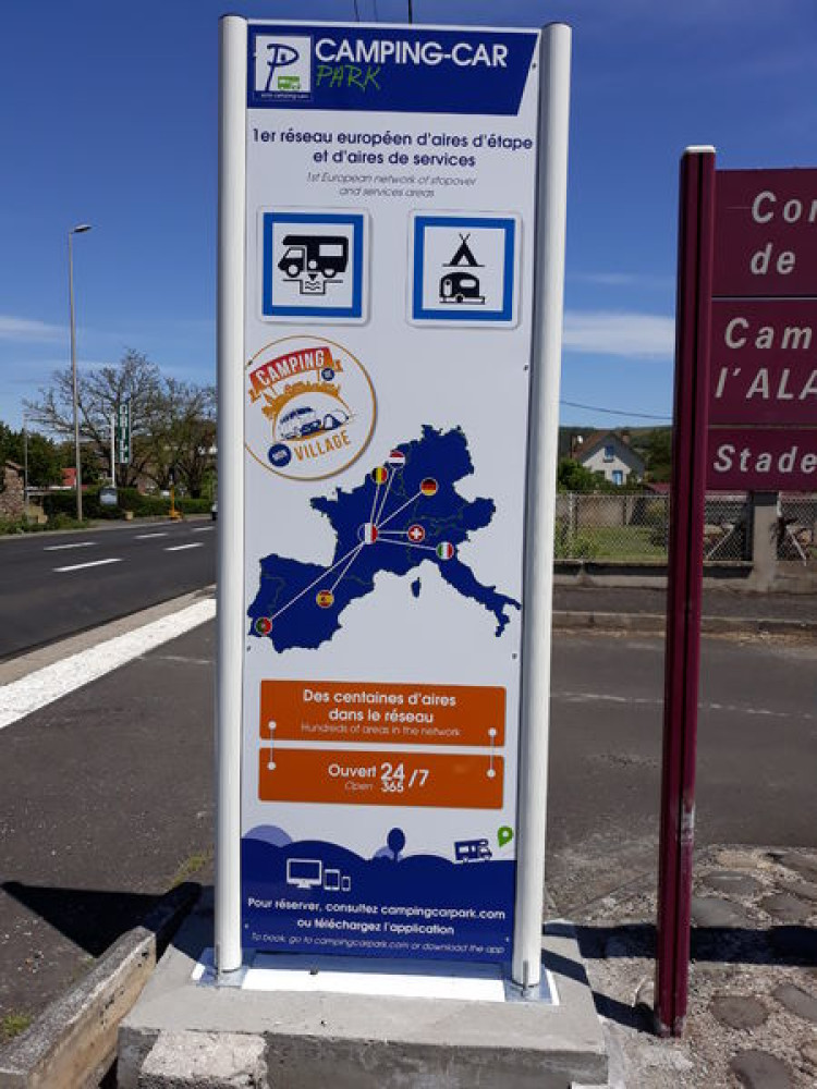 Service and parking area attached to the Camping-car Park network in the municipal campsite. Shady pitches on grass by the river. The commune has been awarded the "Village Etape" label, making it an ideal stop-off point on your vacation route.