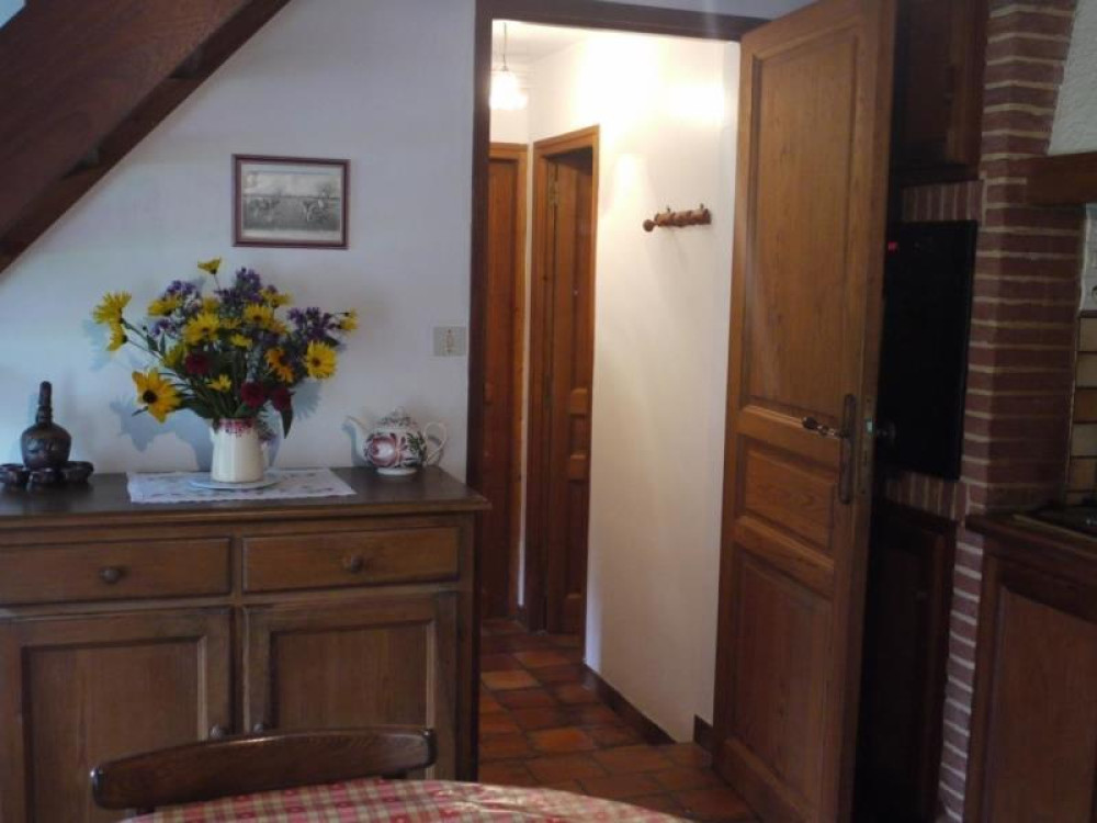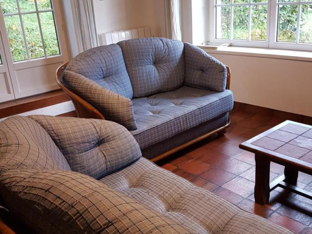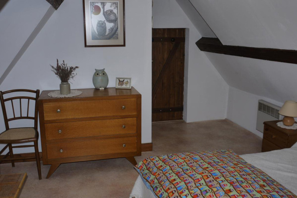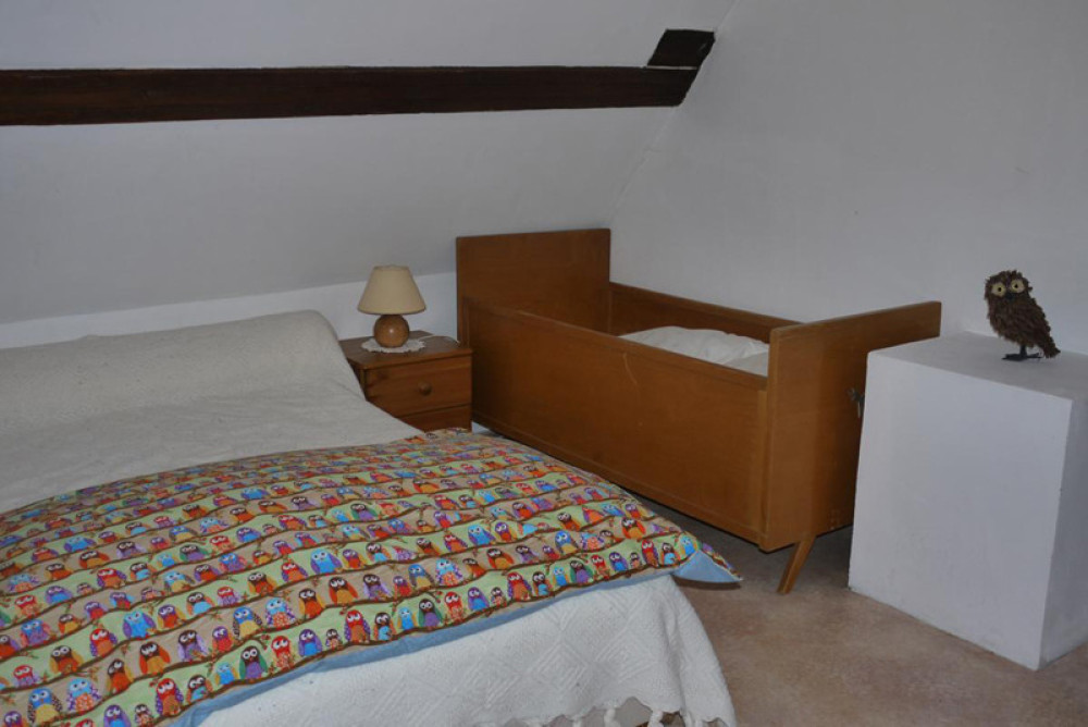 On the ground floor: living room-kitchen, sitting room (20 m²) with fireplace (wood-burning stove), TV, 1 single bed, sofa, washing machine, bathroom, toilet, 1 bedroom with a double bed. Upstairs: 1 bedroom with a double bed and a children's bed. Telephone plug. Electric heating at extra charge. Optional housecleaning service: 30€. Linen rental.