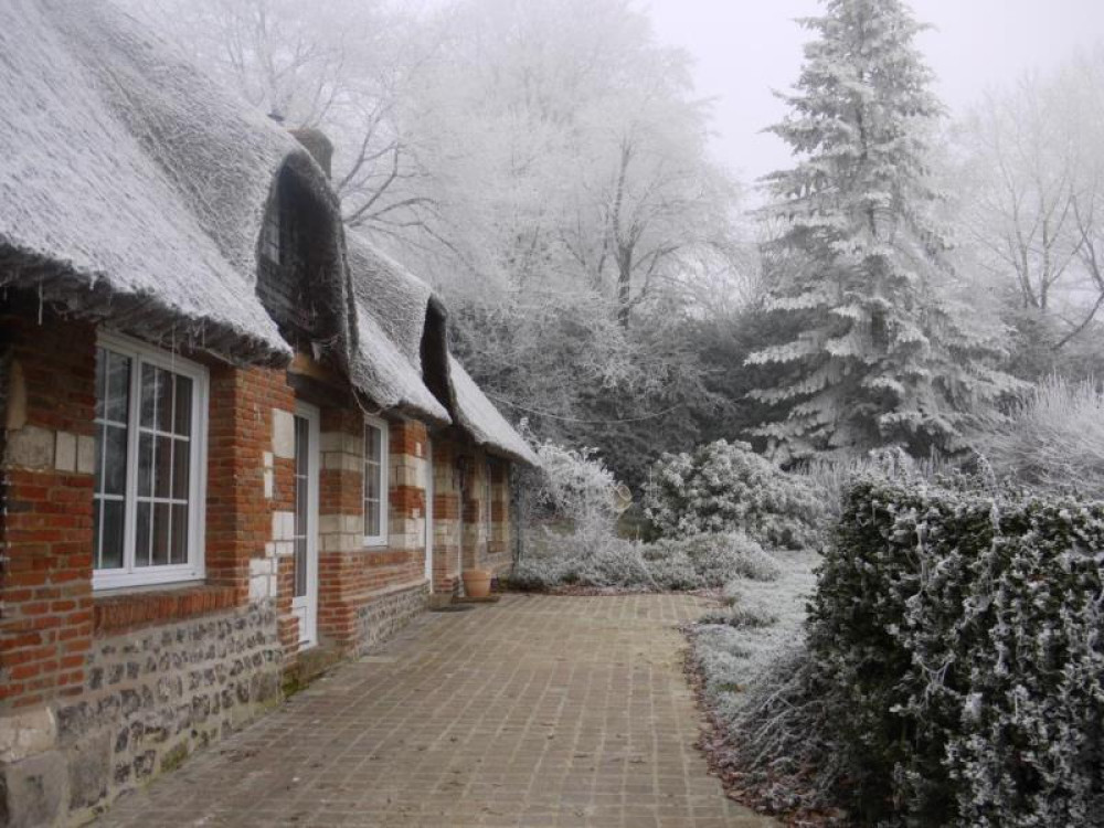 Beautiful 18th century Norman thatched cottage renovated and situated on a former farmyard. 1500 m² private but not enclosed garden, carport.