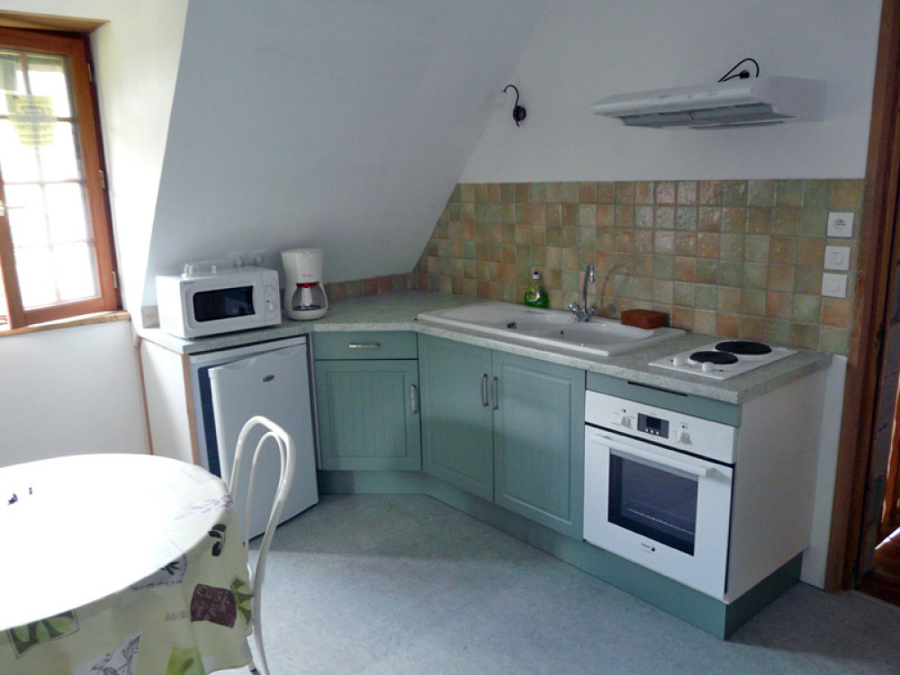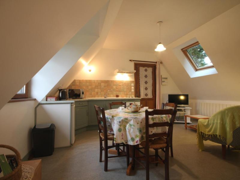 In the green setting not far from a regional natural park, comfortable studio-flat on the 1st floor of a recent outbuilding built in the style of Normandy, set in a "Clos Masure" (traditional enclosed farmyard) with slopes, apple trees and 18th century thatched cottages.