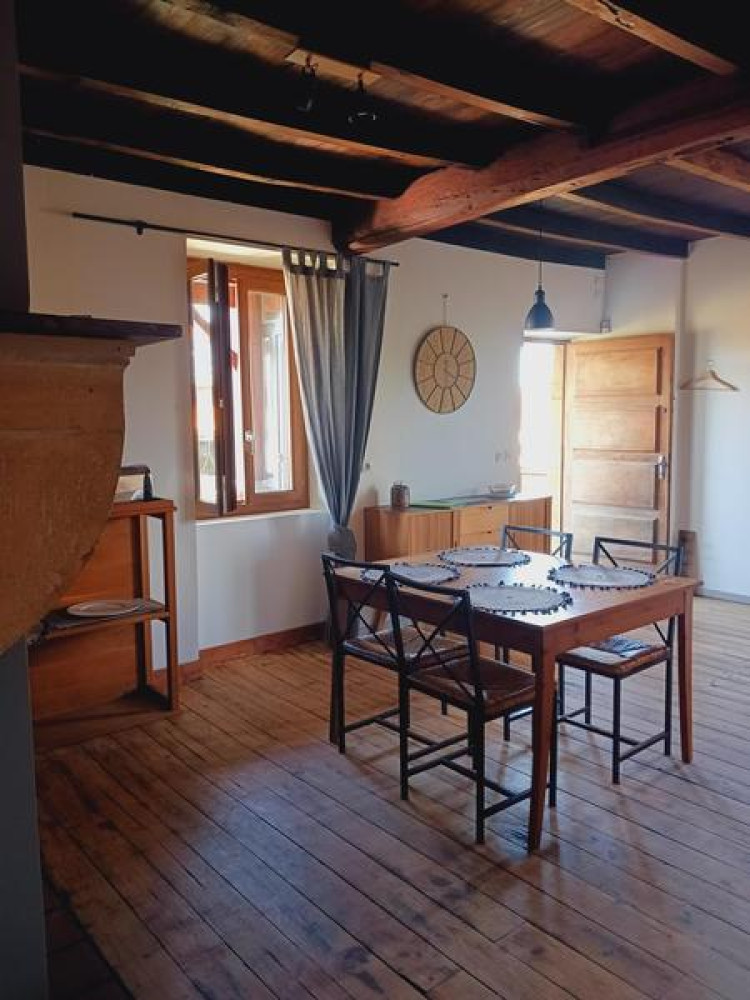 Gîte de 85m2 dans un ancien corps de ferme, idéalement située aux portes des pierres dorées, dans un petit hameau au calme, entre vignes et fruitiers parfait pour le repos, les loisirs et les visites. Capacité d'accueil : 1 à 4 couchages.L'accès à la maison se fait par la cour intérieure commune. Au 1er étage l'entrée par le patio donne accès à la cuisine équipée et salle à manger, le salon en enfilade est équipé d'un coin bureau. Un WC se trouve également sur ce palier. A l'étage deux chambres, avec un lit double de 140x190 dans la 1ere ainsi qu'une salle de bain et WC et 2 lits simples de 90x190 dans la deuxième. Le chauffage est électrique et le logement est équipé d'une cheminée (foyer fermé). Les draps, coussins, couettes et torchons sont à votre disposition. Les serviettes de toilette ne sont pas fournies.