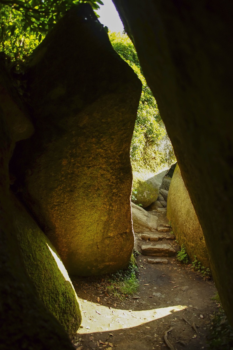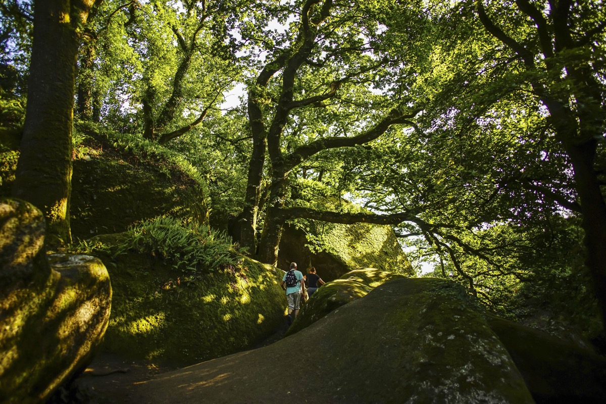 Après un pont, virer à gauche dans un sentier qui longe la Rivière d’Argent. Passer successivement devant la Mare aux Fées et le Gouffre. Par un escalier, rejoindre vers la gauche la D769a que l’on suit sur 150m. Tourner à droite vers un parking puis s’enfoncer dans la forêt pour rejoindre une voie forestière. Virer à gauche pour arriver sur une voie communale. Descendre légèrement vers la gauche pour rejoindre le parking de l’Arquellen. Virer légèrement à droite (suivre le Circuit des Chevreuils) qui surplombe un ruisseau (Clair-Ruisseau). Après plusieurs virages prendre à gauche vers la Mare aux Sangliers. Remonter et virer à gauche vers une voie forestière. Présence d’un menhir puis de la Grotte d’Artus.