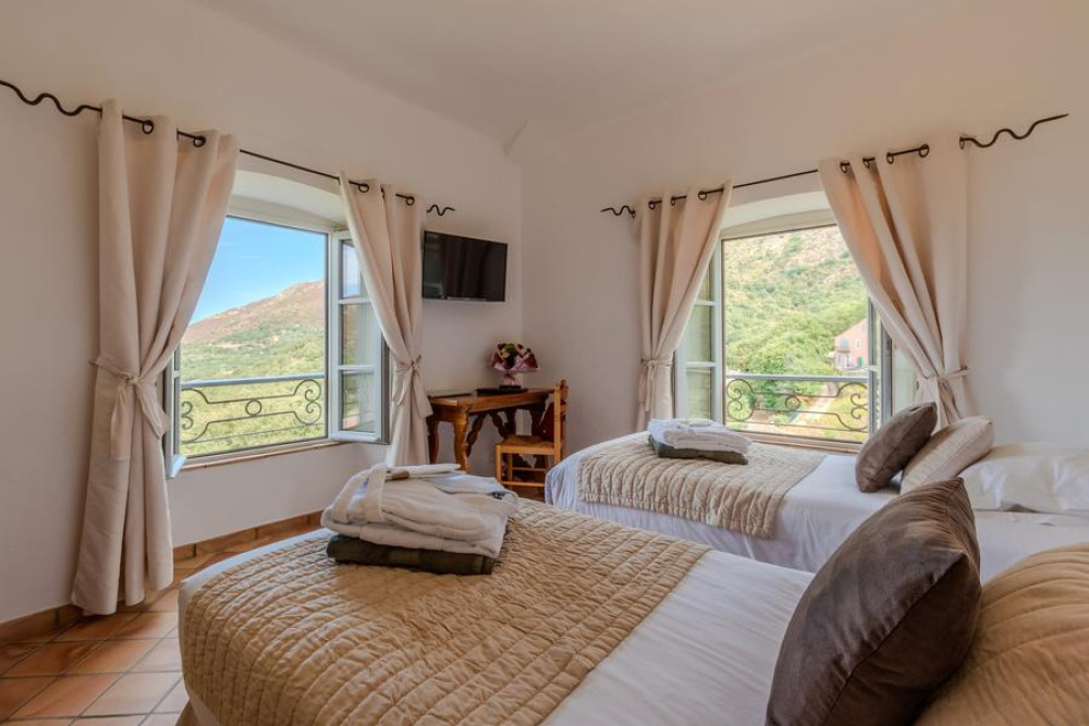 Les 18 chambres ont toutes été rénovées et décorées avec soin par Jean Renucci, l’actuel propriétaire, dans un style sobre et raffiné, en harmonie avec l’histoire des lieux.