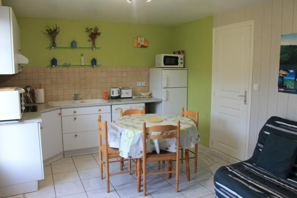 Situé à 1,5 km de Vic-sur-Cère (tous commerces, services et activités), cet appartement au rez de chaussée de la maison des propriétaires bénéficie d'une très belle vue sur les montagnes au calme idéal pour un couple et un enfant .enclos ferméAccès indépendant. Parking privé. 800m² de terrain clôturé. Salle de séjour avec coin cuisine, une chambre avec un lit 2 personnes. Salle de bains avec WC. Chauffage central au fuel Cuisine équipée : lave linge, four micro ondes, mini four, télévision avec TNT. Lit et chaise bébé. Canapé convertible. Terrasse aménagée, chiens acceptés.