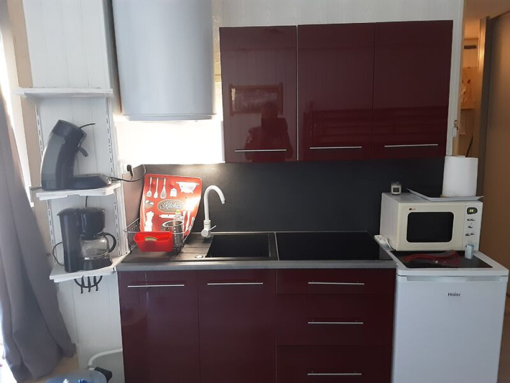 Studio de 28m2, avec balcon sud est, vue sur les pistes. Accès direct tous commerces.Studio pour 6 personnes avec 1 cuisine équipée, 1 pièce de 28m2 comprenant 1 canapé convertible 140, 1 lit superposé 140 en bas et 140 au dessus.