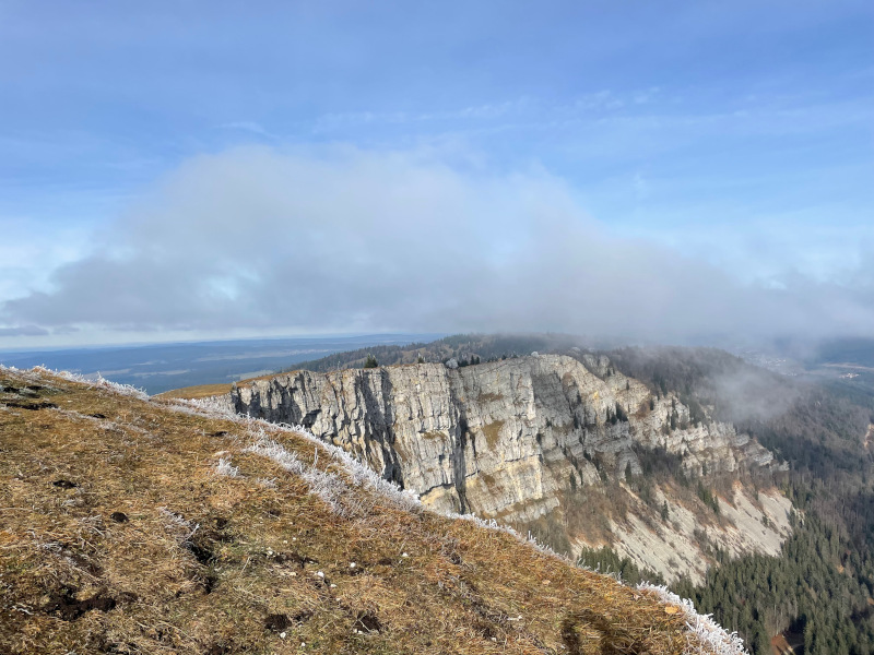 Le début s’effectue en forêt sur les traces de la mythique Grande Traversée du Jura pour surplomber le Cirque du Cernois en contrebas sur votre gauche.