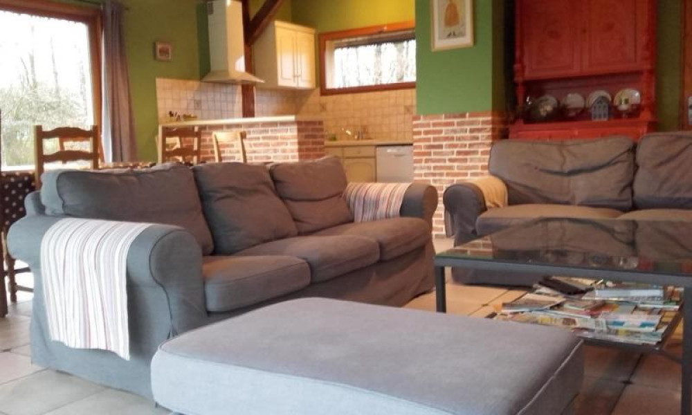 Rez-de-chaussée : grand salon confortable avec cheminée, TV, DVD, téléphone, cuisine américaine (lave-vaisselle, micro-ondes), lave-linge, sèche-linge, 1 chambre (1 lit 2 personnes 160cm), grande salle d'eau, wc. Etage : 1 chambre (1 lit 2 personnes 160cm, 1 lit 1 personne), 1 chambre (1 lit 2 personnes 160cm, 2 lits 1 personne), salle de bain, wc. Chauffage géothermie en sus. Forfait ménage possible. Location de linge. Wifi.