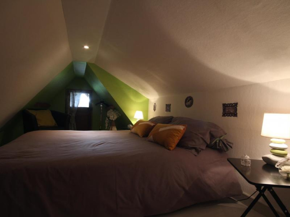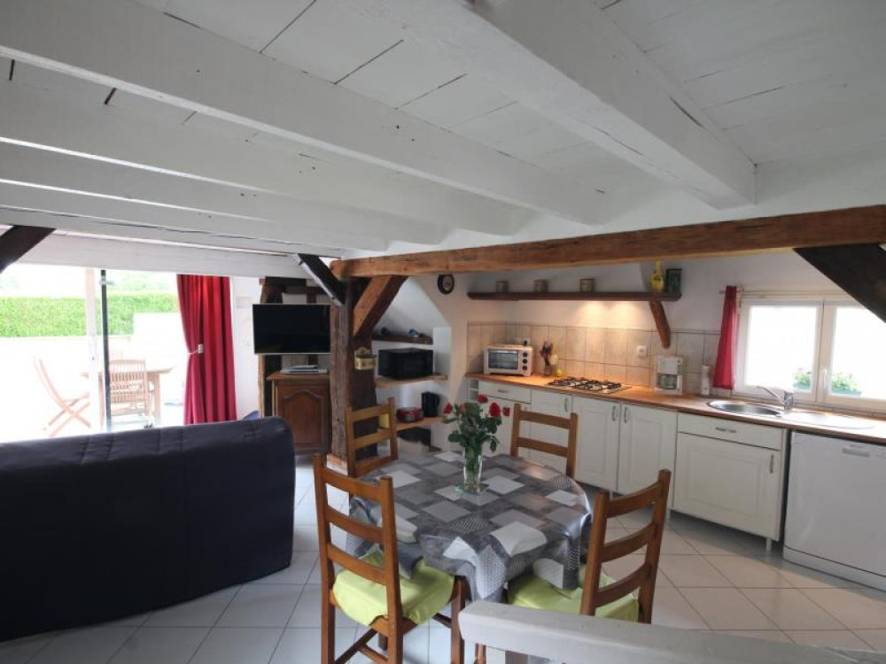 Rez-de-chaussée : - pièce de vie comprenant : cuisine ouverte (micro-ondes, mini-four, lave-vaisselle, lave-linge...), séjour, salon (convertible de qualité 2 personnes en 140x190cm), - salle d'eau avec wc. TOUTES CHARGES COMPRISES. (Pour information, une petite mezzanine basse d'une hauteur non règlementaire et ne permettant pas de se tenir debout est équipée d'un lit de 2 personnes. Elle peut être utilisée pour les personnes de petite taille qui le souhaiteraient. Précisons que seul le couchage du convertible situé dans le salon au RDC est agréé aux normes.)