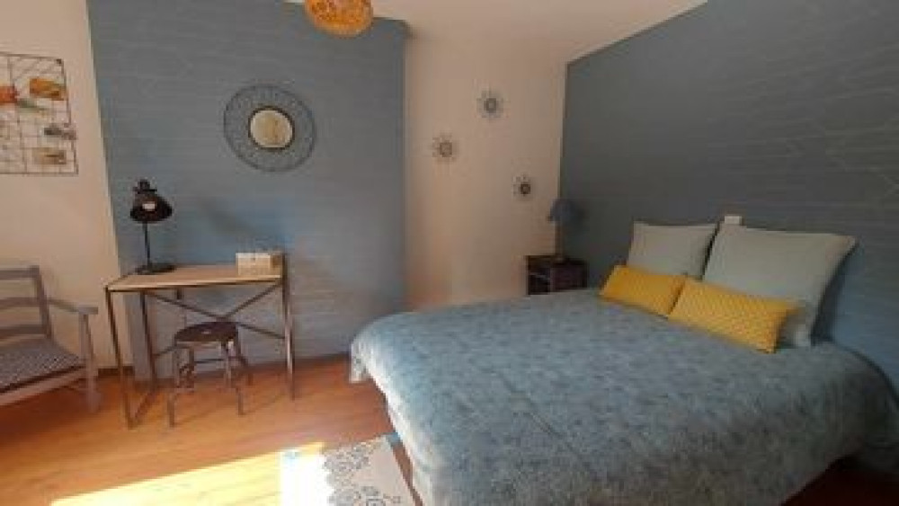 A l'étage une pièce palière avec coin lecture, infos touristiques et jeux de société, ainsi que 2 chambres. L'une de 11m² est équipée d'un lit double en 140, d'un bureau et de rangements. La seconde chambre de 17m², dispose de rangements ainsi que 3 lits simples dont 2 pouvant être jumelés pour former un lit double.