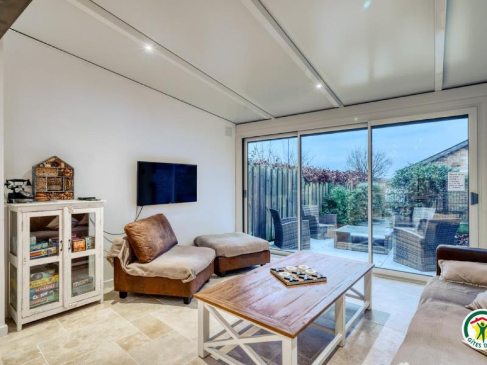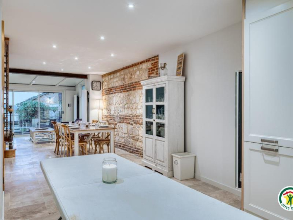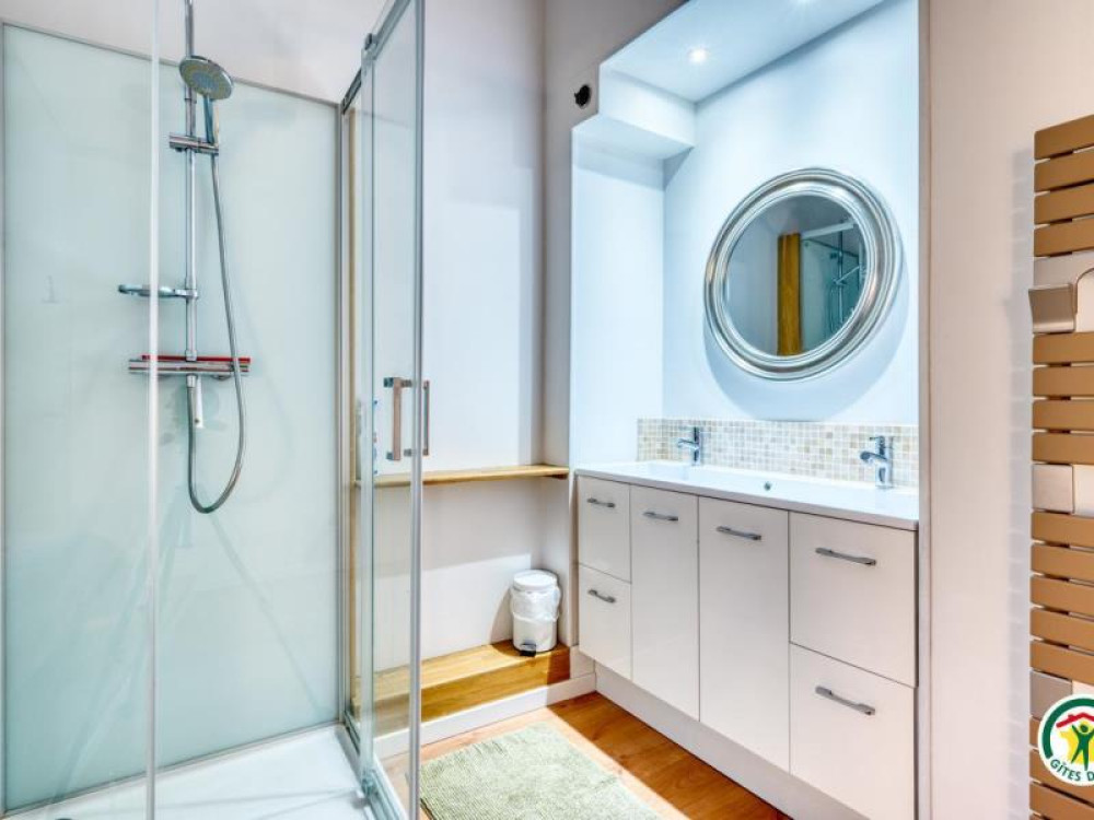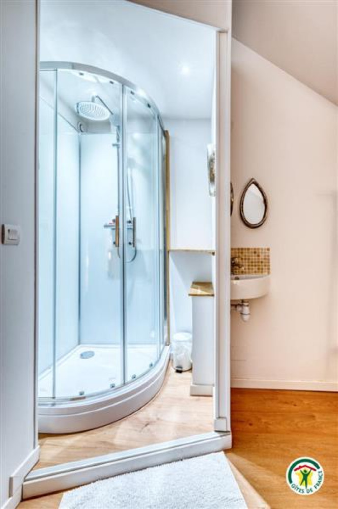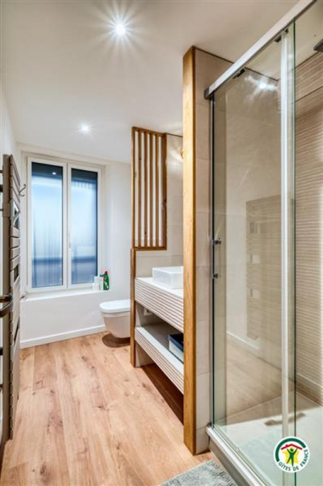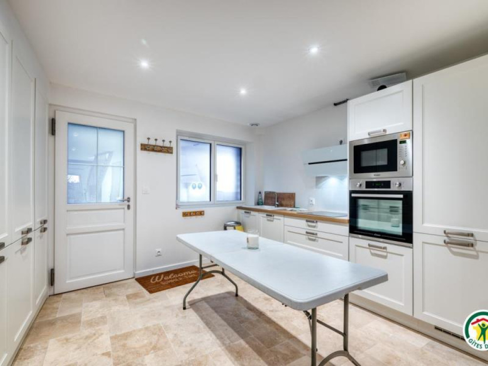 Rez-de-chaussée : - cuisine ouverte (plaques vitrocéramiques, lave-vaisselle, four, micro-ondes, frigo-freezer), - coin salon dans la véranda, TV écran plat - coin repas avec grande table - wc au rdc 1er étage : - 1 chambre (1 lit 2 personnes 180x200cm), - 1 chambre (2 lits de 90 cmx200 superposés), - salle d'eau avec wc. 2ème étage : - 2 chambres avec 2 lits 2 personnes 160x200cm possédant chacune une douche et un lavabo (1 wc cloisonné dans l'une des 2 chambres). Extérieurs : - Cour aménagée close avec terrasse Possibilité de location de la totalité des draps et serviettes de toilettes pour 80€ avec la propriétaire. À noter, ce gîte n'est pas en formule tout compris : certaines options sont en supplément.
