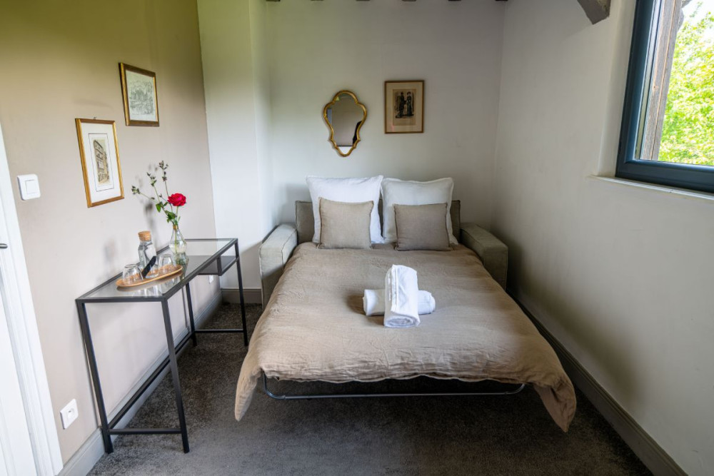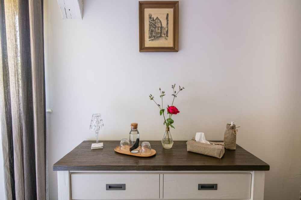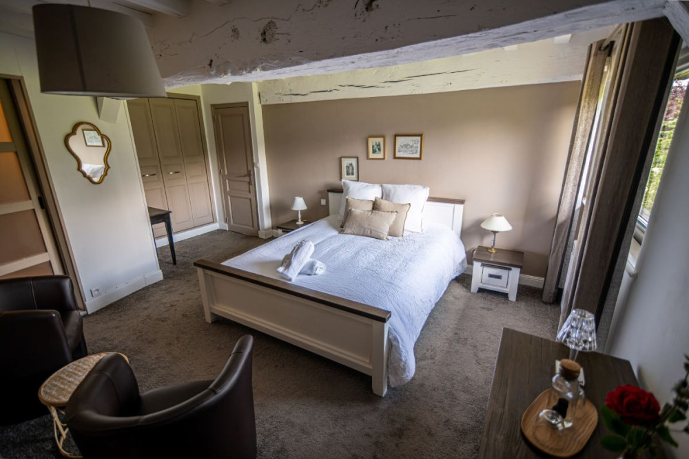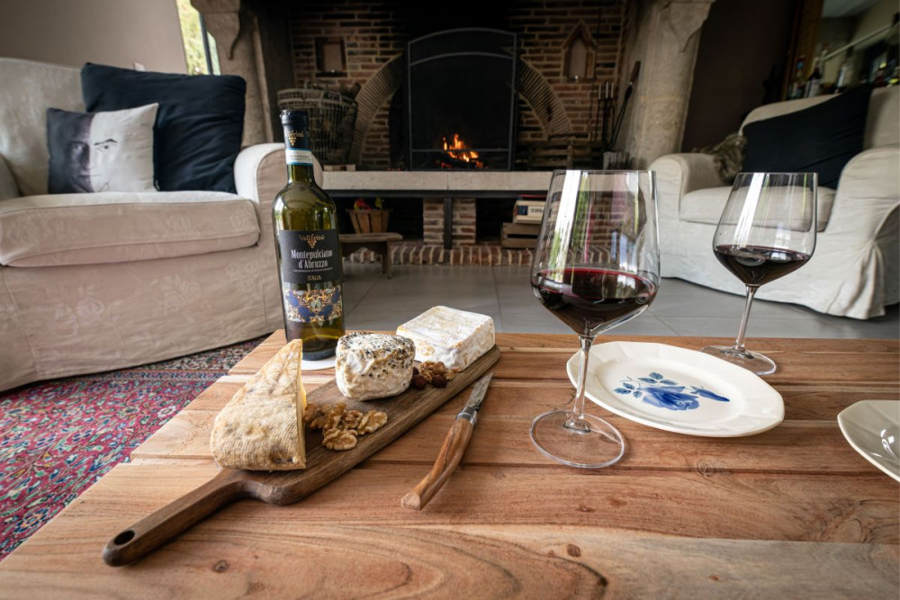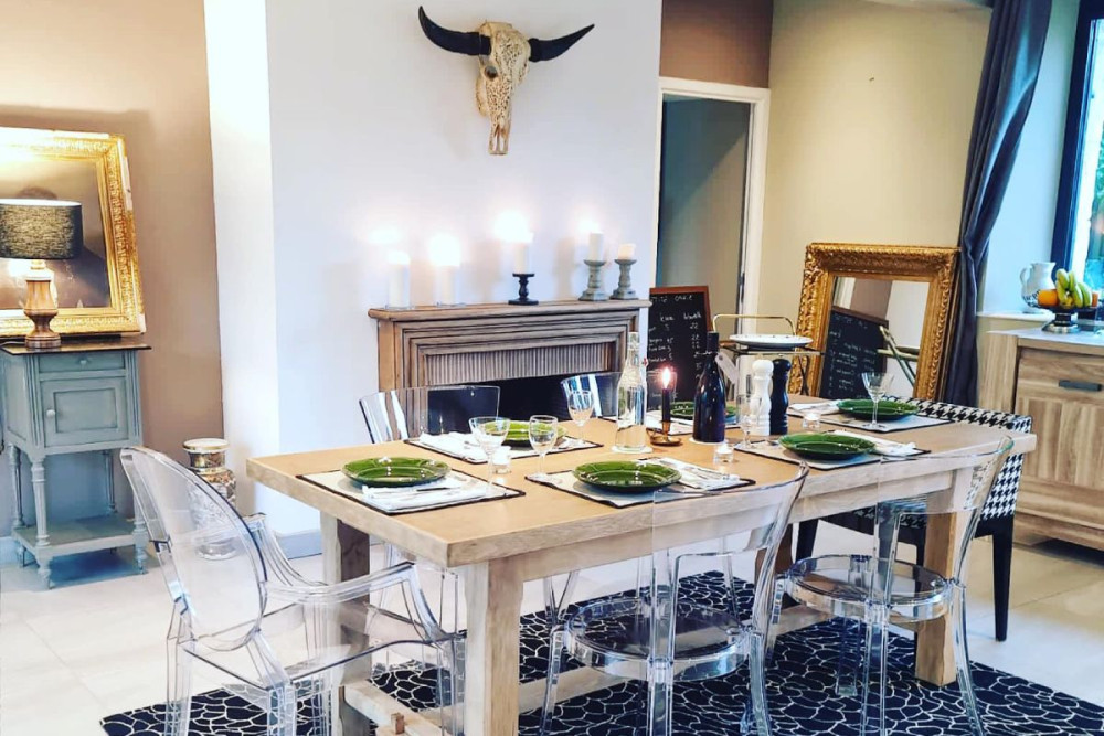 Une maison pensée comme une maison de campagne. Avec 3 chambres de charme, chacune ayant sa salle de bains privative et dispose d’un confort haut de gamme, grand lits 160 et linge de lit en lin. Un grand salon salle à manger où trône l’imposante cheminée, cette grande pièce est à disposition des hôtes. Elle contient un large canapé pour se prélasser au coin du feu, buller, bouquiner, trinquer ! Le diner est servi à la table d'hôte tous les soirs, uniquement sur réservation. Il n'y a pas possibilité de pic niquer sur place ou d'apporter son propre repas.