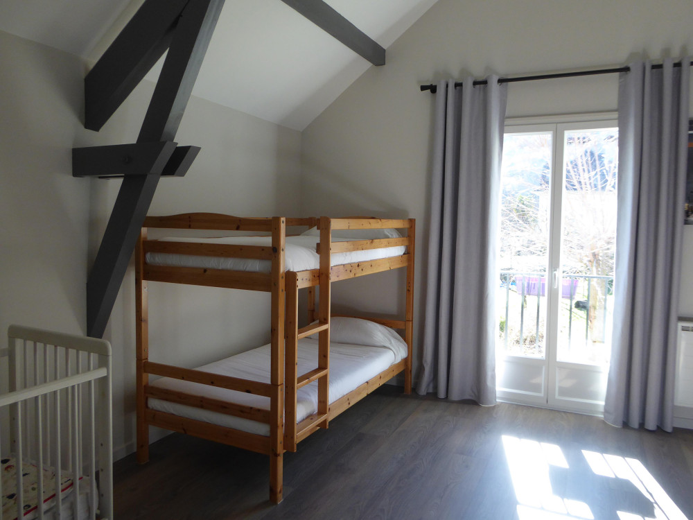 L'étage se divise en 3 chambres de 2 à 3 pers. et 2 chambres avec mezzanine pour 4 pers. Chaque chambre dispose d'un sanitaire (lavabo-douche-WC). Idéal pour les groupes désirant pratiquer des activités sportives tel que ski, vélo, randos, pêche, escalade, canyoning, thermalisme, réunions de familles etc.. Possibilité de gestion libre. Draps fournis.