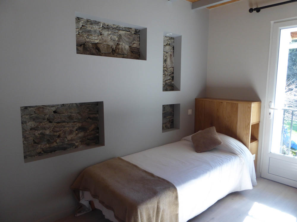 5 chambres dont 2 avec mezzanine aménagées dans une ancienne grange restaurée avec goût, annexe de la maison des propriétaires, au centre de Laruns. Sanitaires privatifs communicants (s. d'eau/wc). Grande pièce de vie avec table commune conviviale, coin salon (TV, cheminée), kitchenette. Parking/cour, jardin clos, salon de jardin. Départ de randos. Les propriétaires, passionnés de montagne, sauront vous faire découvrir la beauté de la vallée d'Ossau. Vous trouverez piscine, tennis, équitation et commerces au village. Parc national des Pyrénées.
